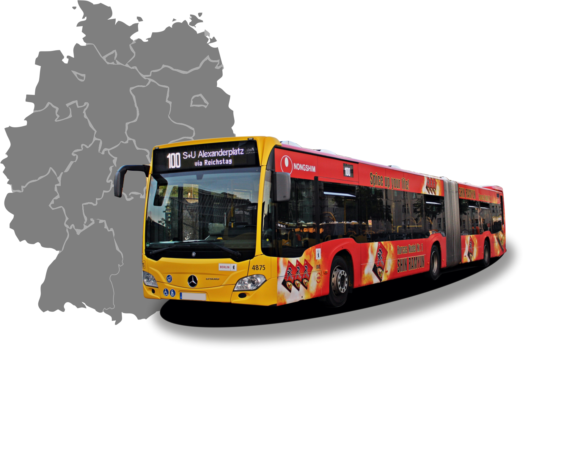 Ihre Marke kann auf den Straßen der Stadt sichtbar werden, dank Werbung in öffentlichen Verkehrsmitteln der BVG. Wir bieten Platzierungen auf Bussen, Straßenbahnen und U-Bahnen mit beliebigen Routen an. Die Möglichkeiten umfassen vollständige oder teilweise Fahrzeugbeklebungen, sodass Sie eine Lösung finden können, die zu Ihrem Budget und Ihren Zielen passt.